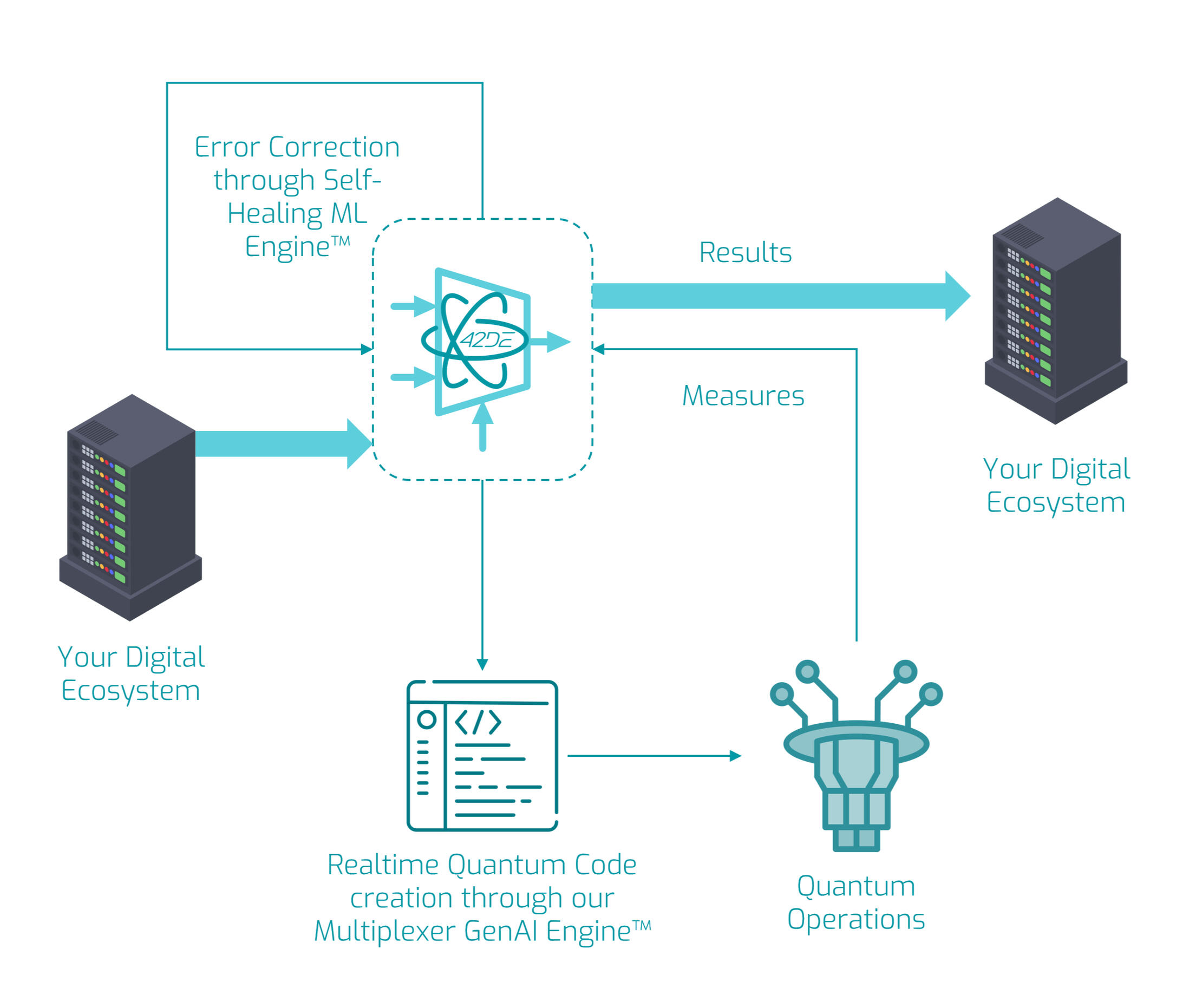 In this way, 42DE is revolutionising computing by using AI and HPC to unlock the true potential of quantum computing. At 42DE, we don't build quantum computers.